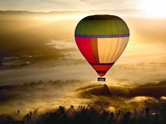 你将会和热气球一起缓缓攀升,滑翔在森林、农庄和葡萄藤点缀的河谷上空,俯瞰晨雾缭绕的山峦起伏。和煦的晨光照耀在你身上,你可以感受到每个人的心潮澎湃,以及那份对自由的向往。在这个世外桃源中漫游,见证旭日东升,将会为你带来无限生机与希望。从墨尔本驱车仅一小时,便可逃离城市生活的琐碎,重新感受大自然的无忧无虑和独特魅力。