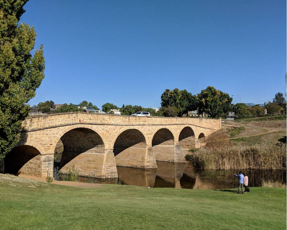 午餐后驱车前往距离市中心只有 15 分钟的卡德奈特峡谷保护区 (Cataract GorgeReserve) ,在那里有建于 1904 年的跨河人行铁索桥、美丽的维多利亚花园、横贯峡谷世界上最长的单索椅式空中缆车(可以自费乘坐)和沿悬崖峭壁而建的步道,还可以看到难得一见的野生孔雀。下午从朗瑟斯顿返回霍巴特,前往罗斯(Ross)小镇观光。