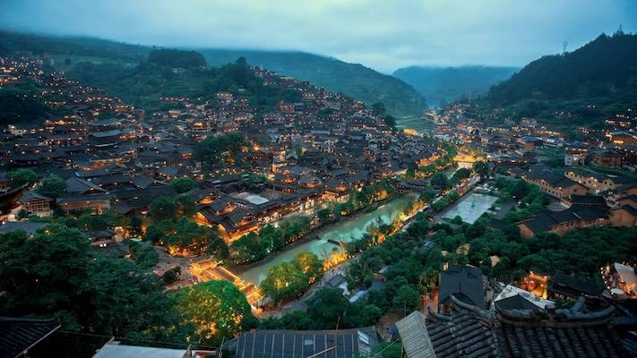 早餐后,参观鸟笼编织艺术之乡【丹寨卡拉村】,为贵州省多种国家级非物质文化遗產的集中展示地,为国家三A级景区,是瞭解贵州在元、明、清等不同时期的民族服饰及不同的民间工匠绝活的示范基地。前往凯里,游览中国第一苗寨之称的【西江千户苗寨】 因有苗族1,000多户,故素有"千户苗寨"之称。此地的房屋大多为木吊脚楼,利用枫木搭成,依山势 向两边展开,暗红色的枫木板壁在夕阳照射下一片金黄。