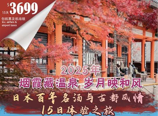 日本百年名汤与古都风情15日体验之旅-含机票纯玩无购物无自费推荐