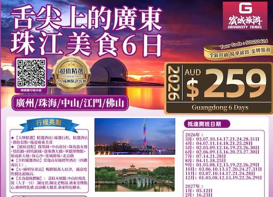 【超值精选】ZGM舌尖上的广东珠江美食6日游-广州/珠海/中山/江门/佛山
